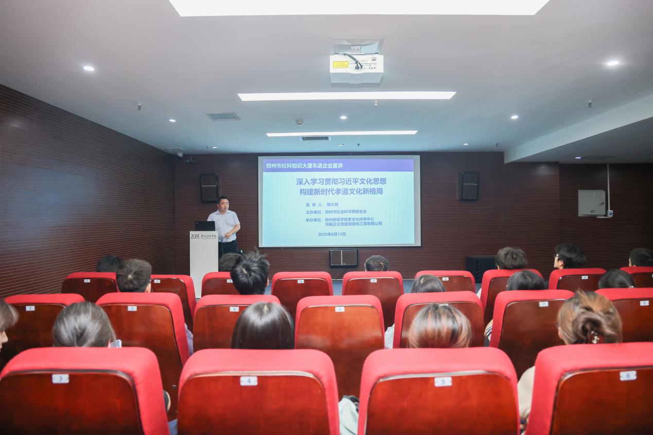为做好社科普及宣讲工作,持续开展习近平新时代中国特色社会主义思想和党的二十大精神的进基层宣讲活动,贯彻落实全国、省、市宣传思想文化工作会议精神,6月12日上午,由郑州市社会科学界联合会主办,郑州财经学院孝文化传承中心与河南正众贤建筑装饰工程有限公司联合承办“深入学习贯彻习近平文化思想 构建新时代孝道文化新格局”为主题的宣讲活动,在承办企业举办。校党委宣传部部长杨建伟、机关二党总支书记时健、欧美www处长陈明灿、河南正众贤建筑装饰有限公司总经理徐志春及公司20余名职工参加宣讲活动,活动由徐志春主持。